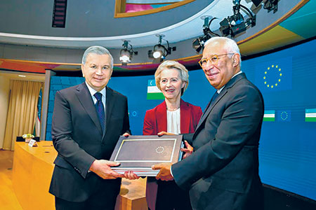 Bir gün əvvəl Özbəkistan prezidenti Şavkat Mirziyoyev Brüsselə səfər edib və burada Avropa Şurasının sədri Antonio Kosta və Avropa Komissiyasının sədri Ursula fon der Leyenlə əsas danışıqlar aparıb. O, həmçinin Belçika Kralı Filip ilə də dinləyicilər arasında görüş keçirib. Səfər Özbəkistan Respublikası ilə Avropa İttifaqı arasında Birgə Əməkdaşlıq Sazişinin rəsmi imzalanması mərasimi ilə yekunlaşıb. Özbəkistan prezidentinin mətbuat xidmətinin məlumatına görə, bu sənədin imzalanması 1996-cı ildə bağlanmış sazişi əvəz edərək, Özbəkistan və Avropa İttifaqı arasında əməkdaşlıq üçün mövcud hüquqi bazanın yenilənməsi və əhəmiyyətli dərəcədə genişləndirilməsi məqsədi daşıyır.Yeni sənəd hərtərəflidir və ikitərəfli əməkdaşlığın bütün ən mühüm sahələrini əhatə edir. Konkret olaraq, o, ticarət və investisiya məsələlərinə toxunur, həmçinin elm, təhsil, innovasiya, ətraf mühit və iqlim dəyişikliyi ilə mübarizə bölmələrini əhatə edir. Özbəkistan tərəfi vurğulayıb ki, bu sazişin imzalanması tərəfdaşlığı “görünməmiş yüksək səviyyəyə” yüksəldir.