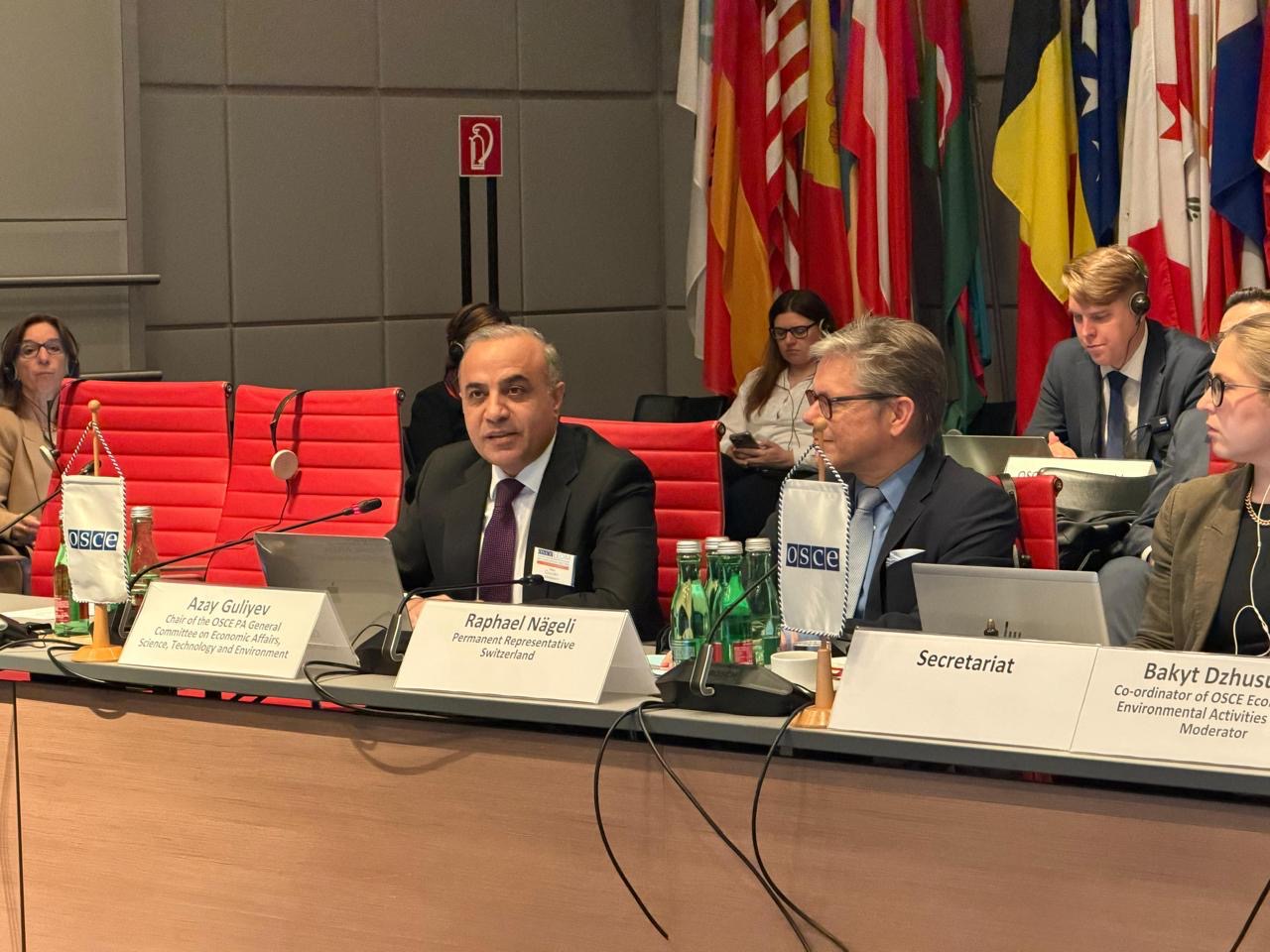 ATƏT-in “Fəlakətlərə qarşı dayanıqlılığın və cavab tədbirlərinin gücləndirilməsində ATƏT-in rolunun artırılması” mövzusunda keçirilən Ətraf Mühit və İqtisadiyyat Ölçüsü üzrə 2025-ci il İcra İclasında çıxış edən ATƏT Parlament Assambleyasının İqtisadi Məsələlər, Elm, Texnologiya və Ətraf Mühit üzrə Ümumi Komitəsinin Sədri, millət vəkili Azay Quliyev çağırış xarakterli nitqində iqlim dəyişikliyi, münaqişələr və korrupsiyanın qarşılıqlı təsirlərinə diqqət çəkərək, bu problemlərin birgə şəkildə həllinin ATƏT-in təhlükəsizliyə dair hərtərəfli yanaşmasının mərkəzində dayanmalı olduğunu bildirib. SİA xəbər verir ki, Quliyev çıxışına Finlandiya Sədrliyinə və ATƏT-in İqtisadi və Ətraf Mühit üzrə Fəaliyyətlər Koordinatoru səfir Bakıt Cüsupova təşəkkür etməklə başlayıb və ATƏT PA-nın bu istiqamətdə gördüyü işləri təqdim edib:
