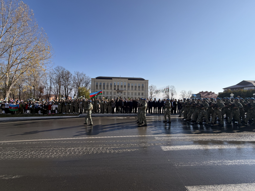 Şəhər sakinləri hərbi yürüşü böyük qürurla izləyiblər.