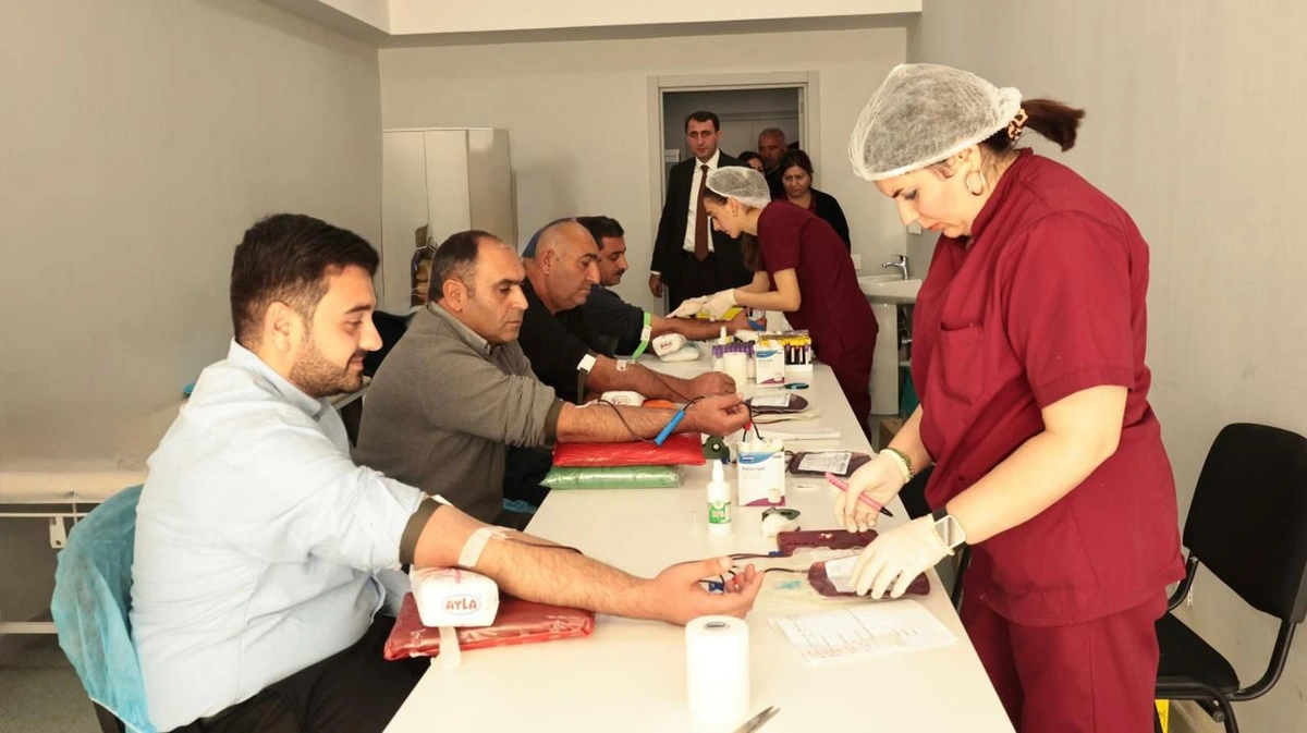 Aksiyada xüsusi tibb briqadasının həkimləri tərəfindən donorların sağlamlıq vəziyyəti yoxlanıldıqdan sonra onlardan qan götürülüb.
