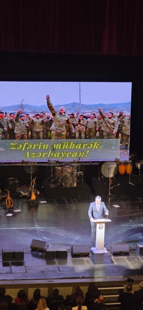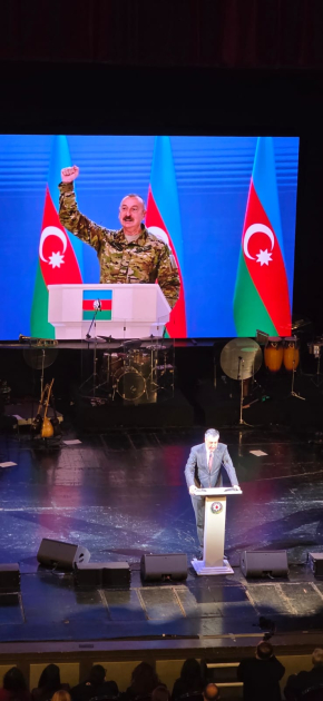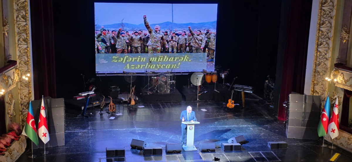 Noyabrın 6-da Tbilisidə Şota Rustaveli adına Milli Teatrda 8 Noyabr - Zəfər Günü münasibətilə bayram tədbiri keçirilib.