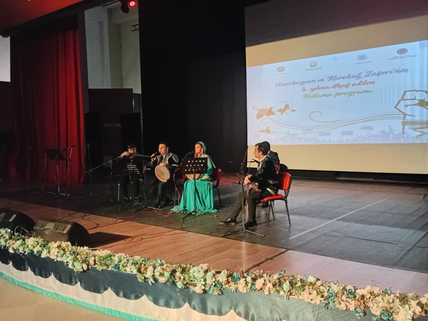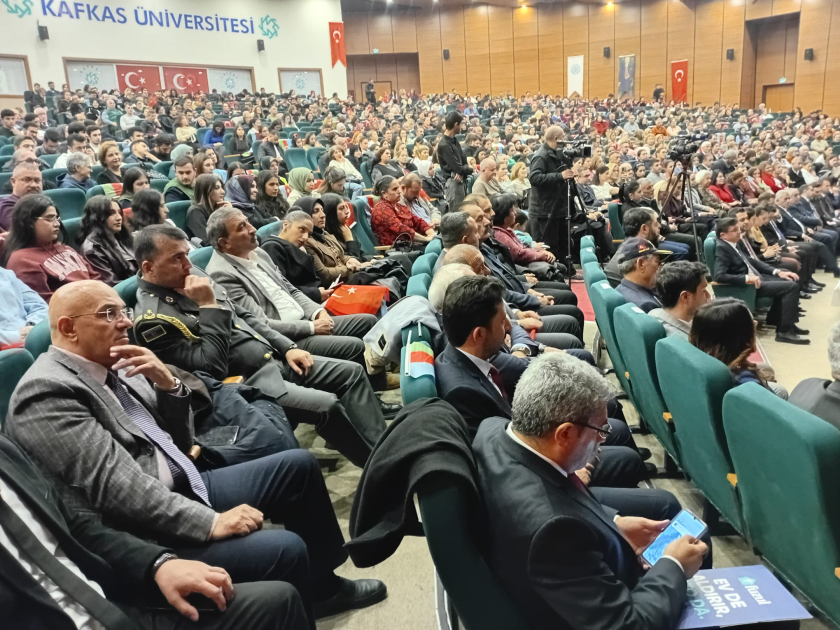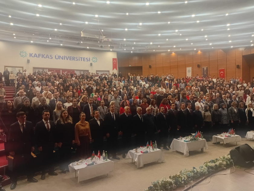 Qars Qafqaz Universitetinin Ahmet Arslan Konqres Mərkəzində 44 günlük Vətən müharibəsində Azərbaycanın Zəfərinin beşinci ildönümünə həsr olunmuş təntənəli tədbir keçirilib. SİA xəbər verir ki, ölkəmizin Qarsdakı Baş Konsulluğu, Qafqaz Universitetinin rektorluğu və Qars Bələdiyyəsinin birgə təşkilatçılığı ilə keçirilən tədbirdə Qarabağ müharibəsi şəhidlərinin doğmaları, millət vəkilləri, Qars Valiliyinin Administrasiyasının nümayəndələri, hərbi qulluqçular, diplomatlar, alimlər, Türkiyə universitetlərinin müəllim və tələbələri iştirak ediblər.