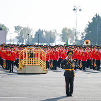 Dövlət başçılarının çıxışlarından sonra Hərbi parad başladı.