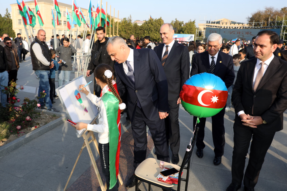 Naxçıvanda Vətən müharibəsində qazanılmış Qələbənin 5-ci ildönümü münasibətilə silsilə tədbirlər keçirilib. SİA-nın bölgə müxbiri xəbər verir ki, Heydər Əliyev Muzeyinin önündə Naxçıvan şəhər 2 nömrəli incəsənət məktəbinin şagirdləri işğaldan azad olunmuş rayonlarımıza həsr olunmuş maraqlı kompozisiya nümayiş etdiriblər.