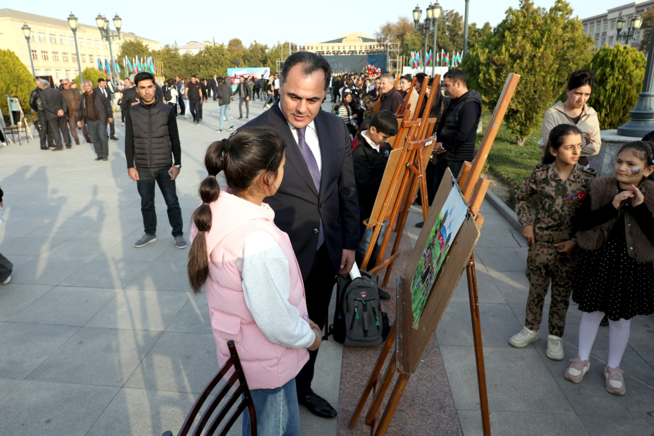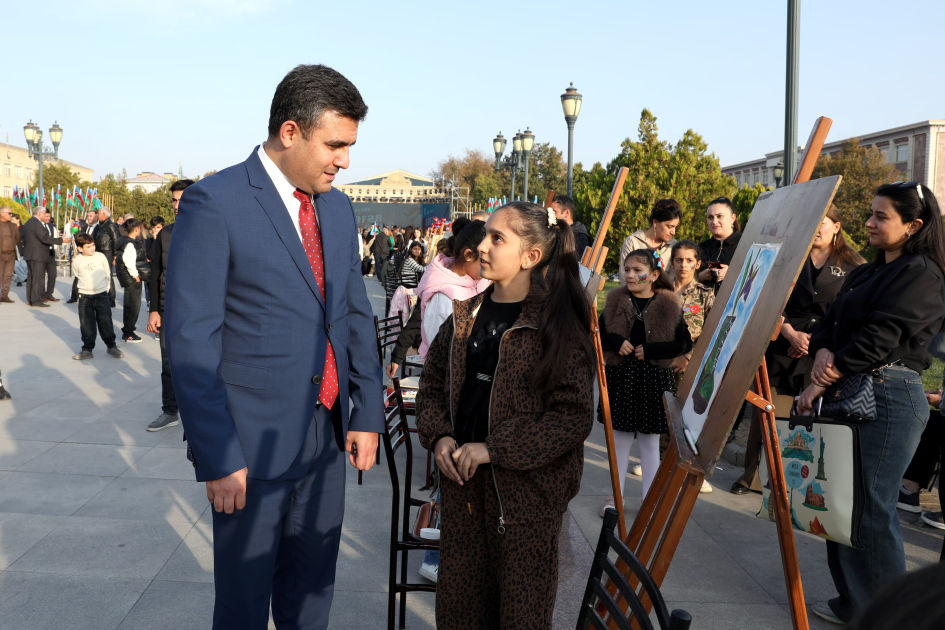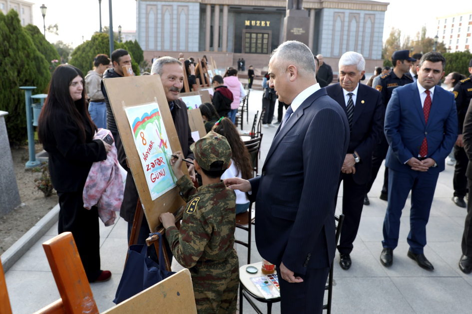 Naxçıvan şəhərindəki ümumtəhsil, incəsənət məktəblərinin, eləcə də Heydər Əliyev Uşaq-Gənclər Yaradıcılıq Məktəbi və Ərtoğrol Cavid adına Uşaq İncəsənət Məktəbinin istedadlı şagirdləri isə şanlı qələbəmizi, Müzəffər ordumuzu və sülh motivlərini əks etdirən, müxtəlif üsulda işlənmiş 50-yə yaxın rəsm əsəri təqdim ediblər.