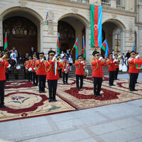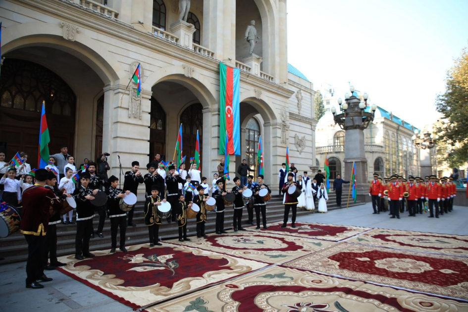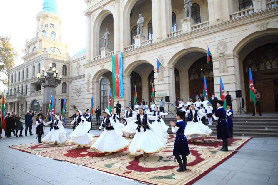 Fikrət Əmirov adına Gəncə Dövlət Filarmoniyasının önündə 9 Noyabr – Dövlət Bayrağı Günü münasibətilə konsert proqramı təşkil olunub. SİA-nın bölgə müxbiri xəbər verir ki, tədbir hərbi orkestrin ifasında Azərbaycan Respublikasının Dövlət Himninin səsləndirilməsi ilə açıq elan olunub.