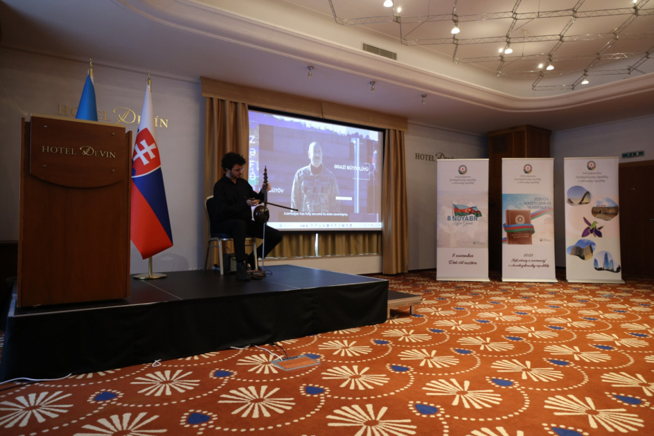 Çıxış edən Azərbaycanın Slovakiyadakı səfiri Vüsal Abdullayev qeyd edib ki, Müzəffər Ali Baş Komandan, Azərbaycan Respublikasının Prezidenti İlham Əliyevin rəhbərliyi ilə rəşadətli Ordumuz 30 illik tarixi ədalətsizliyə son qoyaraq, xalqımıza tariximizin qızıl səhifəsi olan şanlı Zəfəri bəxş edib.