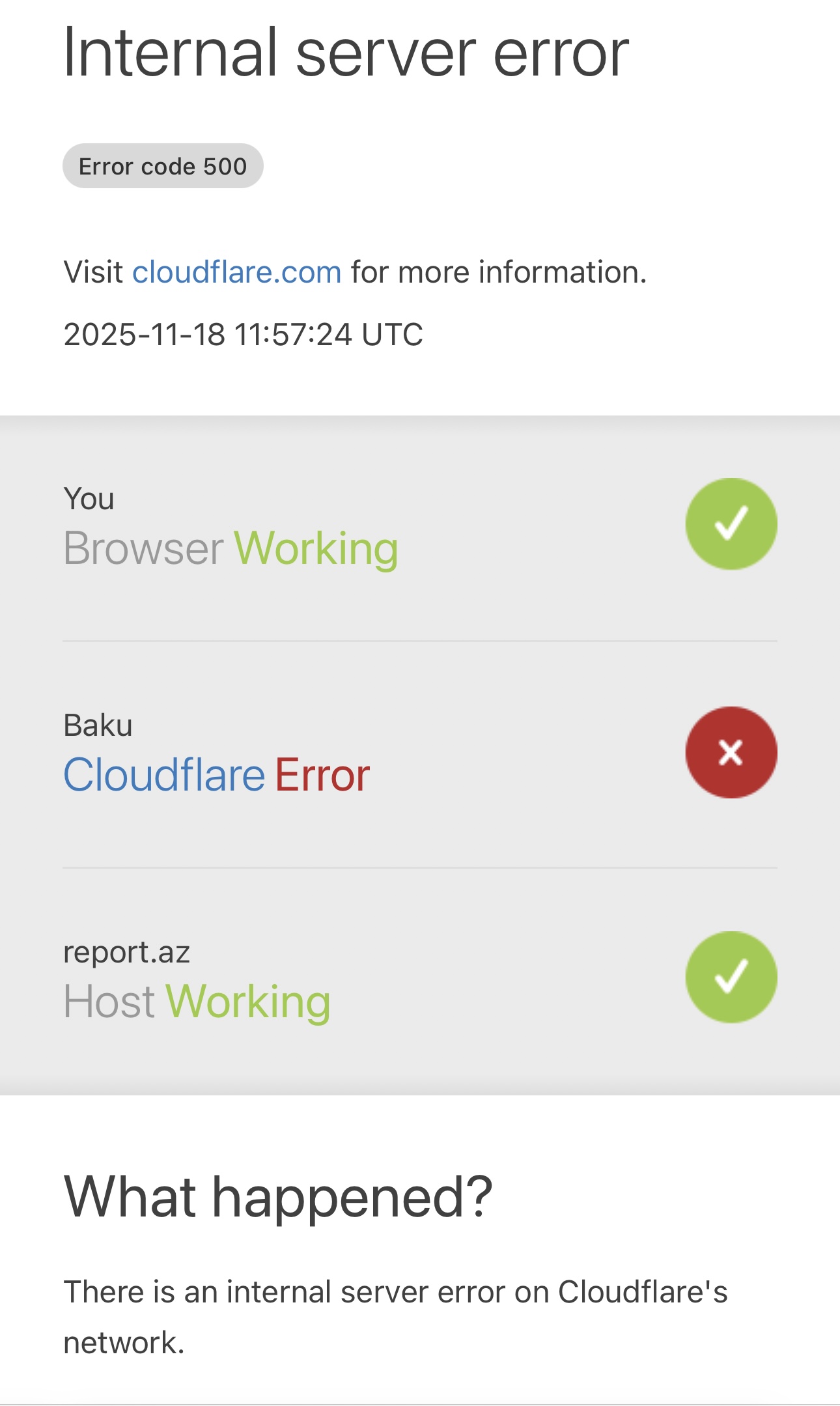 Hazırda veb-saytlara girişdə problemlər yaranıb. SİA xəbər verir ki, "Multimedia" İnformasiya Sistemləri Texnologiyaları Mərkəzinin direktoru Osman Gündüz sosial şəbəkə hesabında Cloudflare-in çökdüyünü və bunun nəticəsində çoxsaylı saytların açılmadığını qeyd edib.