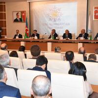 Tədbiri giriş sözü ilə açan YAP Qaradağ rayon təşkilatının sədri Qafar Əliyev partiyanın 33 il ərzində keçdiyi şərəfli yol haqqında ətraflı məlumat verib. O, Ulu öndər Heydər Əliyevin fikir və düşüncələrindən, onun fəaliyyət prinsiplərindən yoğrularaq formalaşan partiyanın tarixi zərurətdən yaranmasından, Azərbaycanın ərazi bütövlüyünün bərpa olunması və dövlət müstəqilliyinin möhkəmləndirilməsi istiqamətində gördüyü mühüm işlərdən geniş bəhs edib. O, partiyanın yaranmasını Ulu öndər Heydər Əliyevin Azərbaycan xalqına bəxş etdiyi töhfələrdən biri kimi yüksək qiymətləndirib. Bu siyasətin layiqli davamçısı olan Azərbaycan Prezidenti, YAP-ın Sədri İlham Əliyevin rəhbərliyi altında dövlətimizin qüdrətinin və beynəlxalq nüfuzunun daha da artdığını xüsusi vurğulayıb.Konfransda çıxış edən Qaradağ Rayon İcra Hakimiyyətinin başçısı Süleyman Mikayılov 1992-ci ildə partiyanın yarandığı vaxt Naxçıvandakı ağır vəziyyəti təsvir edib, həmin dövr Naxçıvana Ulu öndəri görməyə gələn, onun rəbərliyi altında partiyanın yaranmasına çalışan insanların fəaliyyətlərinin dövlətçilik baxımından böyük tarixi əhəmiyyət daşıyan bir hadisə olduğunu bildirib.
