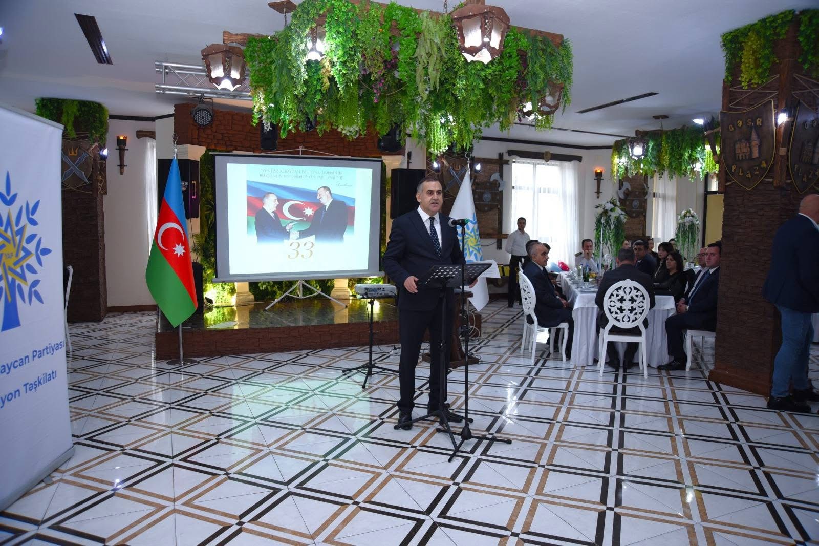 Tədbiri giriş sözü ilə açan YAP Xətai rayon təşkilatının sədri Ramil Mirzəyev Yeni Azərbaycan Partiyasının yaranmasından bu günədək keçdiyi inkişaf yolu barədə geniş nitq söylədi. O, ümummilli lider Heyər Əliyevin siyasi strategiyası və Prezident cənab İlham Əliyevin uzaqgörən siyasəti nəticəsində bu gün ölkəmizin çoxsaylı uğurlar qazanmasında Yeni Azərbaycan Partiyasının əvəzsiz rolu olduğunu söylədi. Ramil Mirzəyev qeyd etdi ki, dövlət başçısı cənab İlham Əliyevin rəhbərliyi ilə həyata keçirilən siyasi kursun davam etdirilməsi ölkəmizi daha da parlaq gələcəyə aparacaq və dünyadakı nüfuzunu daha da möhkəmləndirəcək.