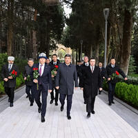 Sonra görkəmli oftalmoloq-alim akademik Zərifə xanım Əliyevanın məzarı ziyarət edilib, önünə tər güllər düzülüb.