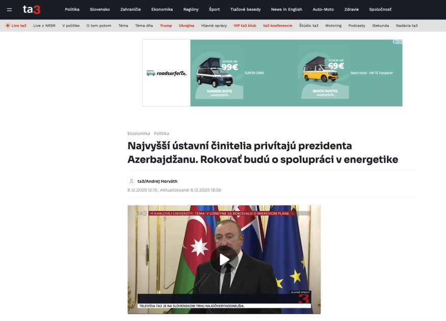 Azərbaycan Prezidenti İlham Əliyevin Slovakiyaya rəsmi səfəri dünya mediası tərəfindən geniş işıqlandırılıb.