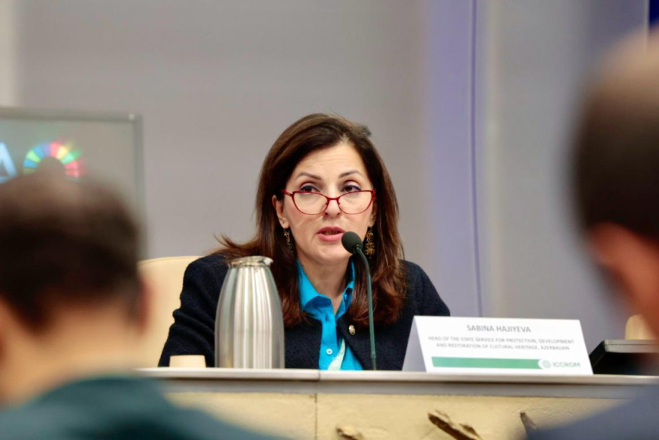 Açılış sessiyasında Səbinə Hacıyeva milli bəyanatla çıxış edərək Azərbaycanın ICCROM-la əməkdaşlığını, UNESCO-nun Ümumdünya İrs Siyahısında yer alan irs nümunələrini və mədəni irsin qorunması sahəsində görülən işləri diqqətə çatdırıb. O, həmçinin işğaldan azad edilmiş ərazilərdə aparılan bərpa və monitorinq prosesləri, aşkar edilən dağıntılar və təhlükəsizlik riskləri səbəbindən inventarlaşdırılması gecikən abidələr barədə məlumat verib.