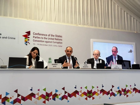 Azərbaycanın Baş prokuroru Kamran Əliyevin rəhbərlik etdiyi nümayəndə heyəti Qətərin paytaxtı Doha şəhərində BMT-nin Korrupsiyaya qarşı Mübarizə üzrə Konvensiyasına Tərəf Dövlətlərin 11-ci Assambleyasında iştirak edir.