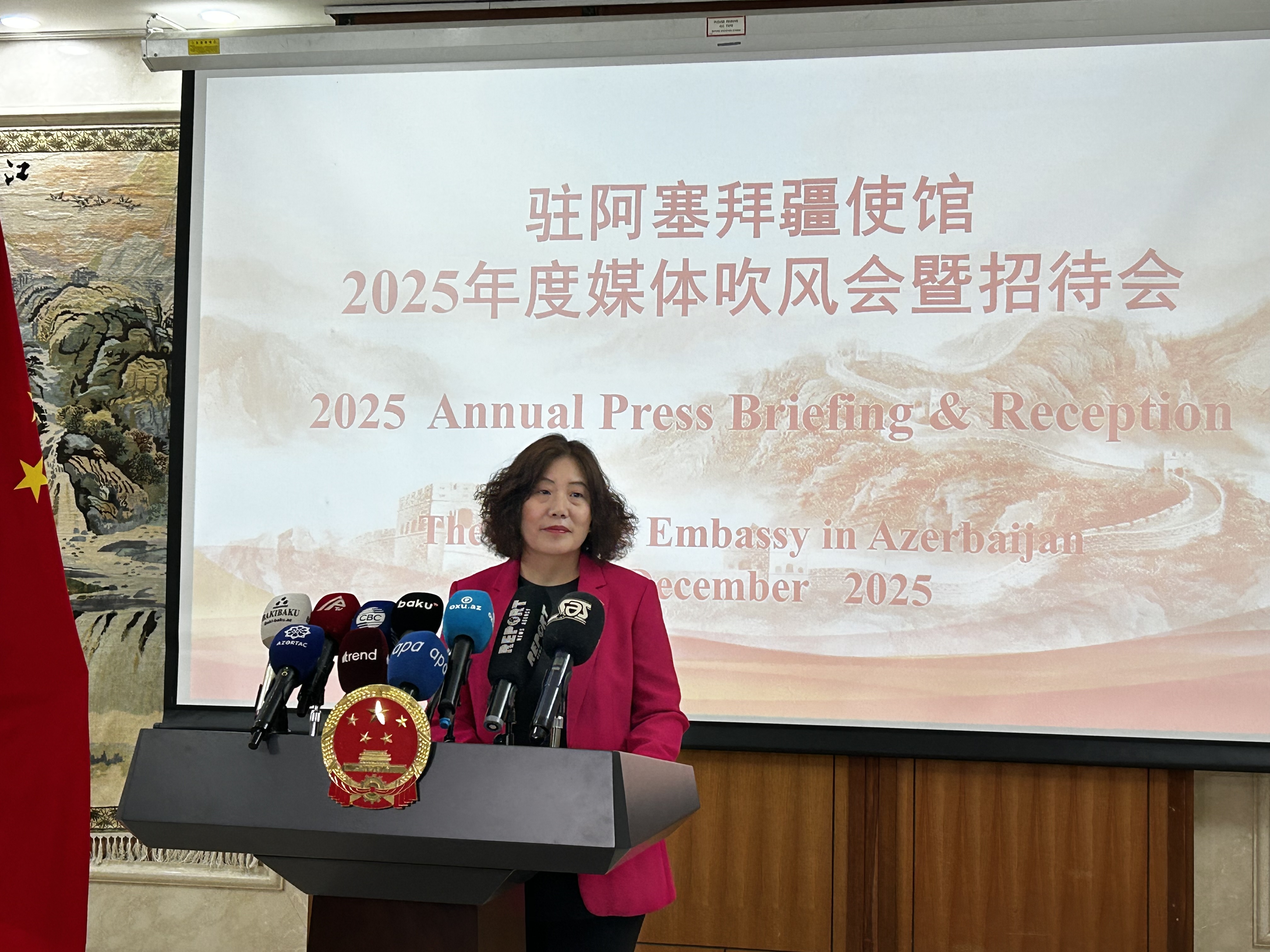 Bakıda Azərbaycan-Çin ikitərəfli münasibətlərinə həsr olunmuş illik mətbuat brifinqi keçirilir. SİA xəbər verir ki, tədbirdə Çin Xalq Respublikasının Azərbaycandakı səfiri Lu Mey çıxış edərək ötən il ərzində iki ölkə arasında münasibətlərin inkişafına dair yekunları təqdim edir.