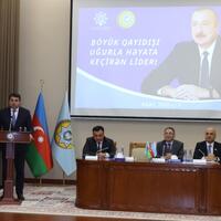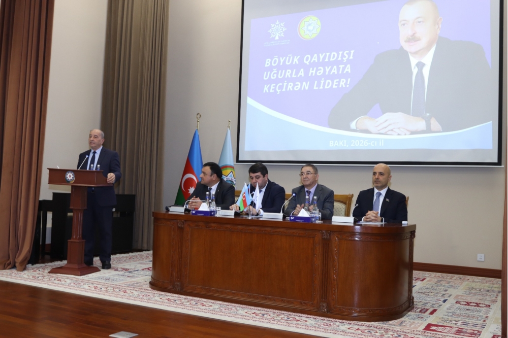 Tədbirin rəsmi hissəsindən öncə Universitetin inzibati binasında Ulu Öndər Heydər Əliyevin büstü önünə tər gül dəstələri düzülüb, Ümummilli Liderin əziz xatirəsi dərin ehtiramla yad edilib.
