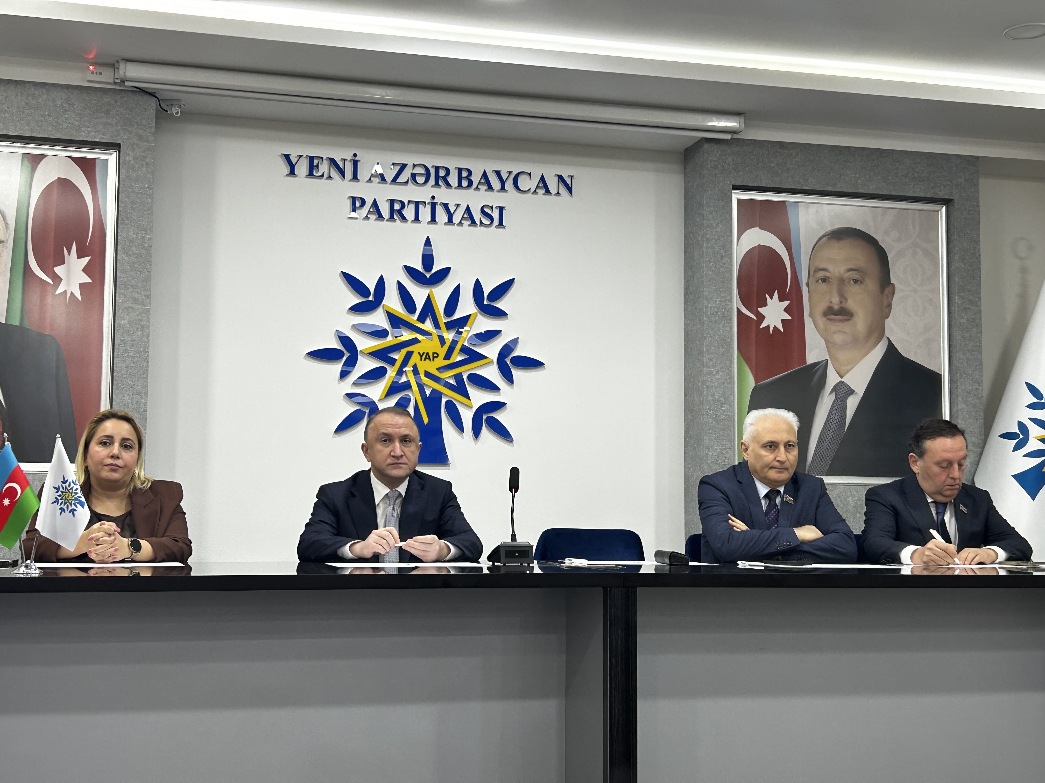 Tədbirdə YAP Mərkəzi Aparatının rəhbərinin müavini Ramilə Bədəlova, Milli Məclisin deputatı, YAP idarə heyətinin üzvü Hikmət Babaoğlu, millət vəkili Samir Vəliyev, YAP-ın Təftiş Komissiyasının üzvü Musa Musayev, partiyanın veteran üzvlərindən Xıdır İbrahimov və fəal gənc Nigar İsmayılova çıxışlarında bildiriblər ki, Heydər Əliyev öz qayıdışı ilə Azərbaycana sabitlik, dirçəliş və fasiləsiz inkişaf gətirdi. Bu gün əsası ulu öndərimiz Heydər Əliyev tərəfindən qoyulan inkişaf strategiyasını Prezident, Yeni Azərbaycan Partiyasının Sədri İlham Əliyev uğurla həyata keçirir. Bu gün sürətlə inkişaf edən müstəqil dövlətimizi uğurlu inkişafa aparan bu yolda hər bir Azərbaycan vətəndaşı Yeni Azərbaycan Partiyasının Sədri, Prezident İlham Əliyevin siyasi kursunu dəstəkləyir və böyük əzmlə dövlətin, xalqın, vətənin mənafeyi naminə səy göstərir.