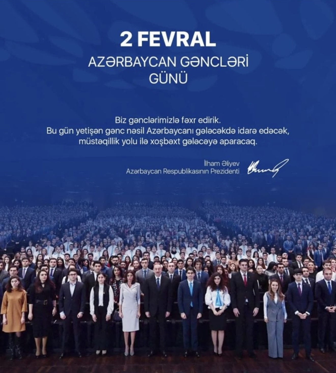 Bu əlamətdar gün münasibətilə bütün Azərbaycan gənclərini səmimi-qəlbdən təbrik edir, onlara sağlamlıq, uğurlar və Vətənimizin parlaq gələcəyi naminə yeni nailiyyətlər arzulayıram”.