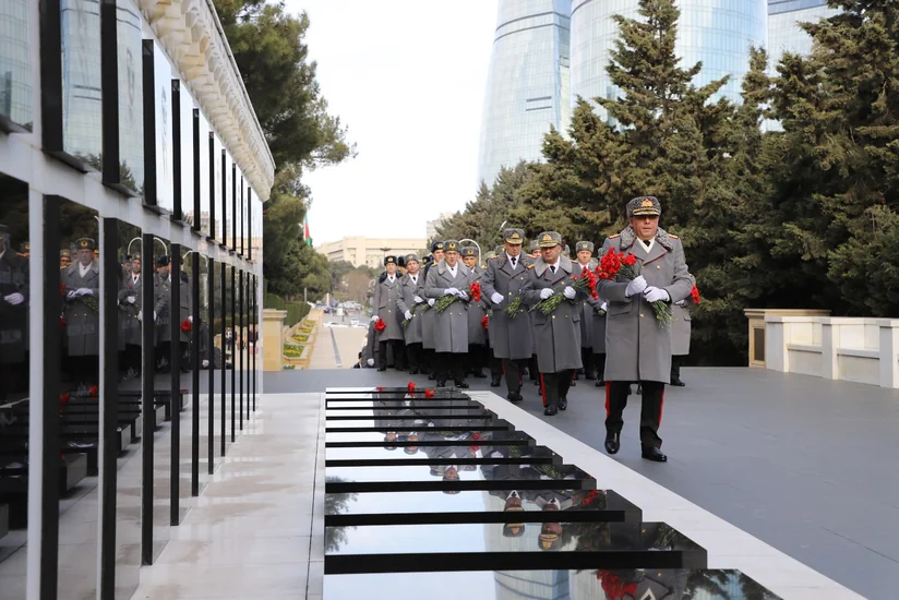 Daha sonra Şəhidlər xiyabanında Azərbaycanın müstəqilliyi və ərazi bütövlüyü uğrunda canlarından keçmiş Vətən övladlarının unudulmaz xatirəsi yad edilib, "Əbədi məşəl" abidə kompleksinin önünə əklil qoyulub.