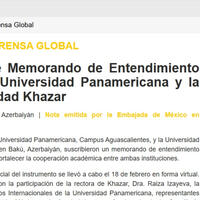 Panamerikana Universitetinin (Universidad Panamericana) “Aguascalientes” kampusu ilə Xəzər Universiteti arasında akademik əməkdaşlığın gücləndirilməsi məqsədilə anlaşma memorandumu imzalanıb.