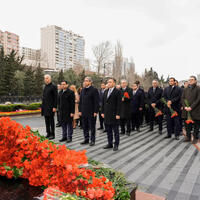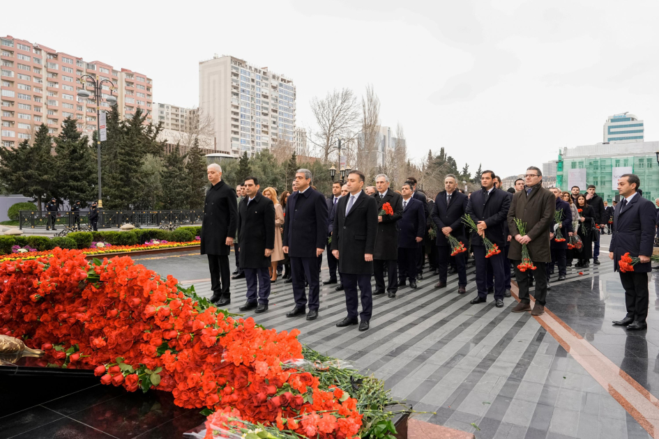 Nazirliyin İctimaiyyətlə əlaqələr şöbəsindən SİA-ya verilən məlumata görə, abidənin önünə gül dəstələri düzülüb, Xocalı soyqırımı qurbanlarının əziz xatirəsi ehtiramla anılıb.