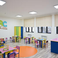Burada 50-dən çox sinif otağı, fizika, kimya və biologiya laboratoriyaları, informatika və STEAM, hərbi təlim, tibb və əmək təlimi otaqları, kitabxana, yeməkxana, akt və idman zalları, həmçinin açıq idman meydançası yaradılıb.