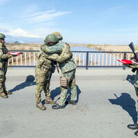 "Ümid" körpüsündə Azərbaycanın Dövlət Himni və Türkiyənin İstiqlal Marşı ifa edildikdən sonra bayraqların dəyişmə mərasimi olub.