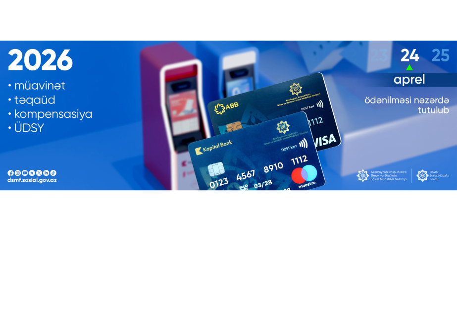 Dövlət Sosial Müdafiə Fondu (DSMF) tərəfindən aprel ayı üzrə bütün müavinət, təqaüd, kompensasiya və ünvanlı dövlət sosial yardımlarının sabah ödənilməsi nəzərdə tutulub.