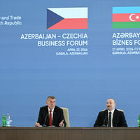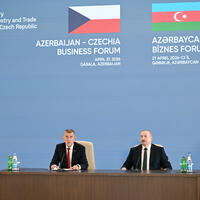SİA xəbər verir ki, Azərbaycan Prezidenti və Çexiyanın Baş naziri tədbirdə çıxış ediblər.