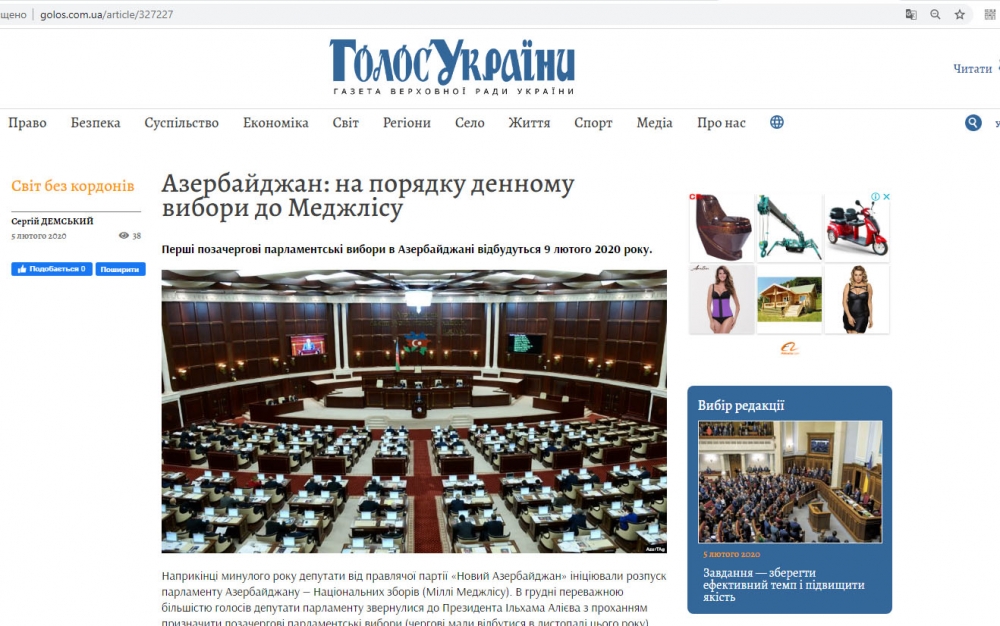 Ukraynanın “Qolos Ukraini” qəzeti Azərbaycanda keçiriləcək parlament seçkiləri ilə bağlı məqalə dərc edib.