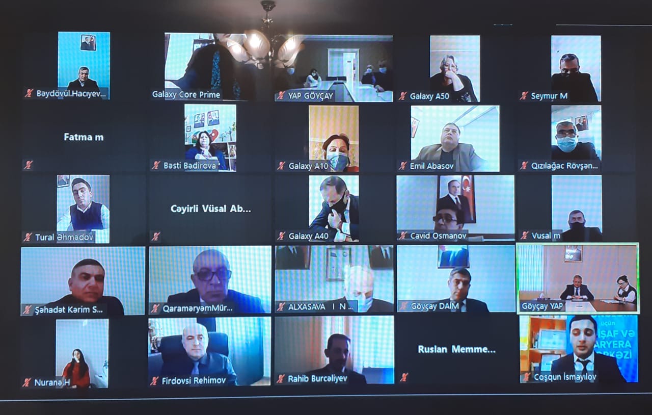 Yeni Azərbaycan Partiyası Göyçay rayon təşkilatının 2020-ci ildəki fəaliyyətinin yekunlarına həsr olunmuş videokonfrans formatında hesabat yığıncağı keçirilib. Hesabat yığıncağında Milli Məclisin deputatı Cavid Osmanov, Yeni Azərbaycan Partiyası icra katibliyi təşkilatlarla iş şöbəsinin baş məsləhətçisi Emil Abbasov, Göyçay rayon icra hakimiyyəti başçısının müavini Zivər Zeynalova, YAP Göyçay rayon təşkilatının şura üzvləri və ərazi ilk partiya təşkilat sədrləri iştirak ediblər.