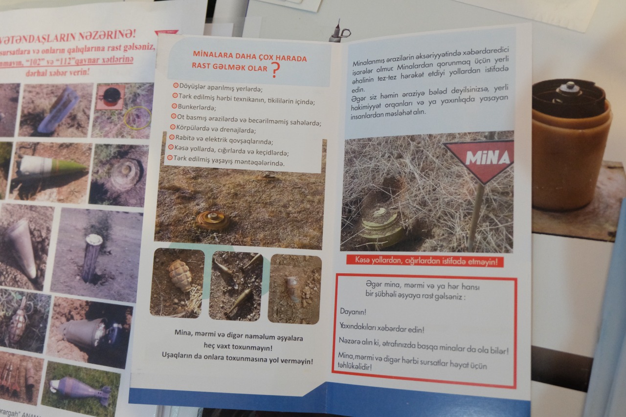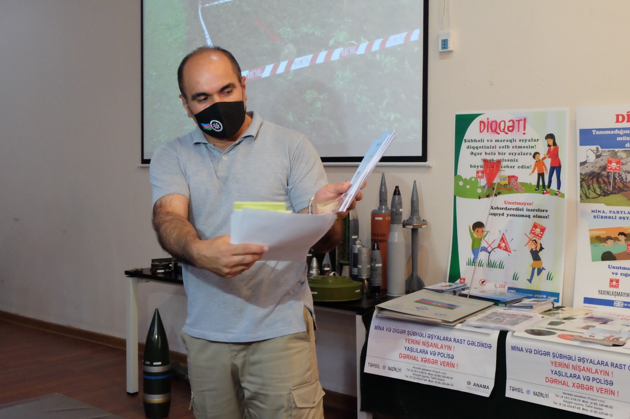 İcra edilən təlimdə mina və partlayıcı qurğuların təhlükəsi, törədə biləcəyi xəsarətlər, mina təhlükəsinin izahı, tanış olmayan şübhəli ərazilərdə davranış qaydaları barədə geniş məlumatlar verilib. Eləcə də, vizual olaraq tanınması üçün təlim iştirakçılarına müxtəlif növ hərbi sursat və minaları əhatə edən təlim sursatlarının nümunələri göstərilib.
