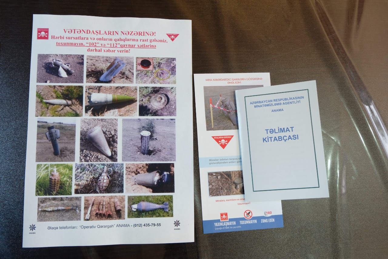 Təlim kitabçaları 5 qızıl qaydanı özündə əks etdirir - “Təyin edilmiş yerlərdən, yollardan və çığırlardan kənara çıxmayın! Naməlum və şübhəli əşyalara toxunmayın! Atılıb qalmış hərbi sursatlar və texnikalar olan sahələrə yaxınlaşmayın! Dağıdılmış yaşayış və digər tikililərin olduğu ərazilərə daxil olmayın! Səngərlər və sığınacaqlar olan sahələrə yaxınlaşmayın!”.