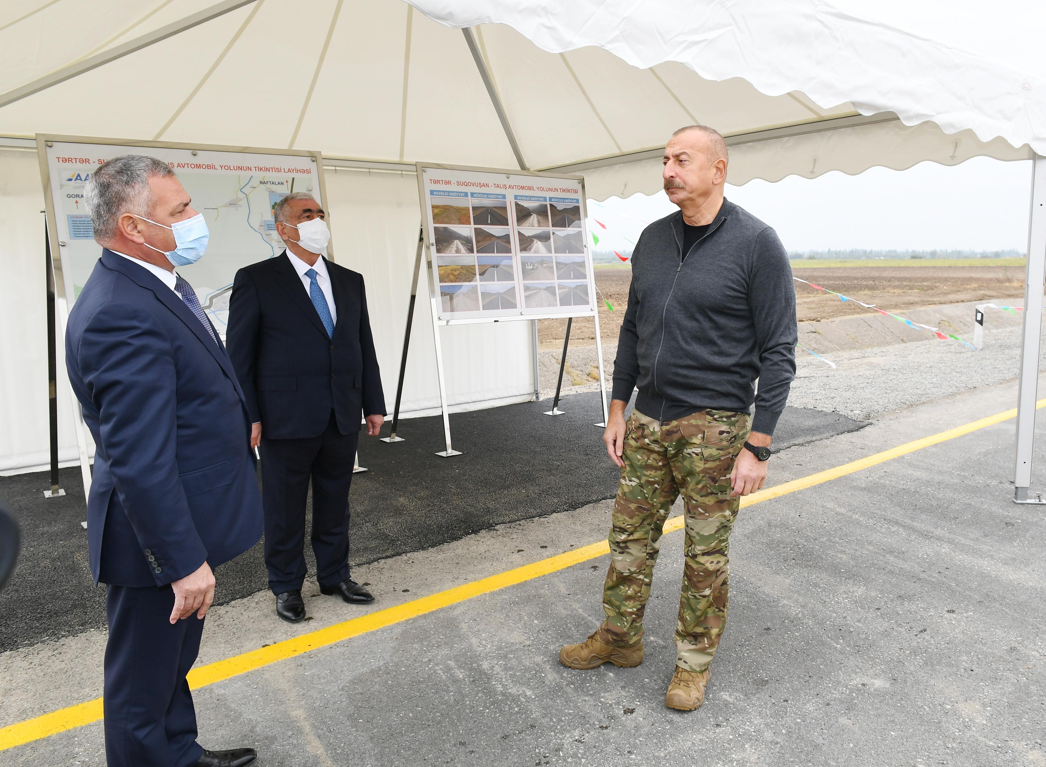 Azərbaycan Respublikasının Prezidenti İlham Əliyev oktyabrın 3-də Tərtər rayonunun Suqovuşan qəsəbəsinə və Talış kəndinə gedən avtomobil yollarının açılışını edib.