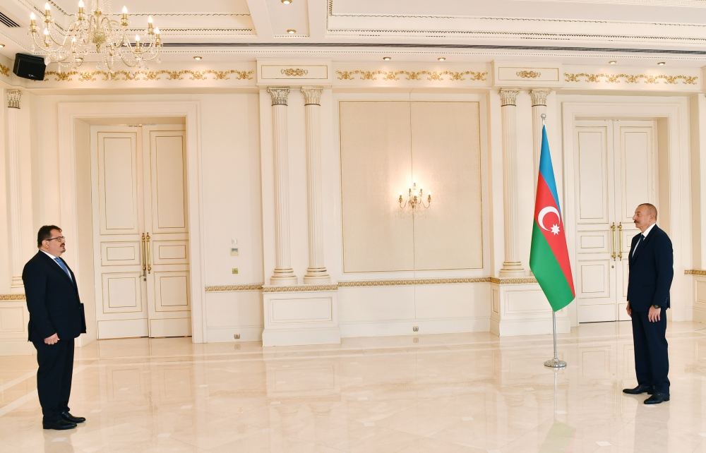 Səfiri salamlayan Azərbaycan Respublikasının Prezidenti İlham Əliyev dedi: