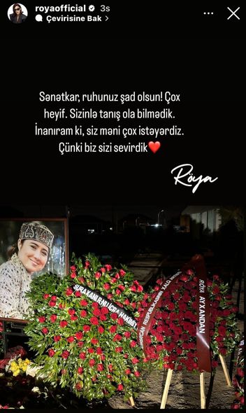 “Sənətkar, ruhunuz şad olsun. Çox heyif. Sizinlə tanış ola bilmədik. İnanıram ki, siz məni çox istəyərdiz. Çünki biz sizi sevirik”.