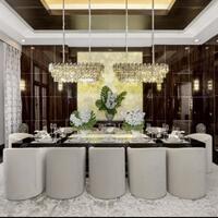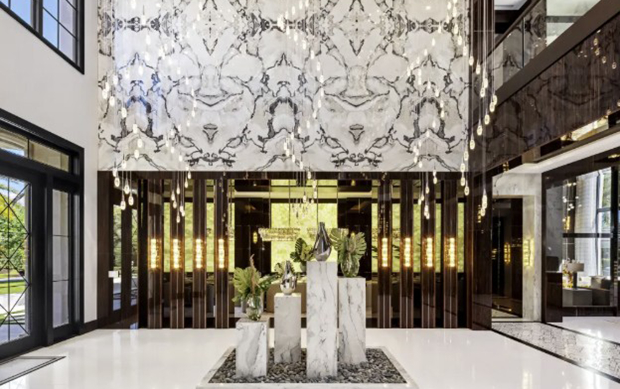 Evin interyeri hündür tavanı, həmçinin çoxsaylı ağac və mərmər elementləri ilə fərqlənir. Otaqlar arasında ofis, ev kinoteatrı, idman zalı, sauna və masaj otağı var. Ərazidə tennis kortu və hovuz da yerləşir.