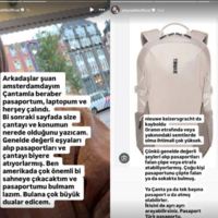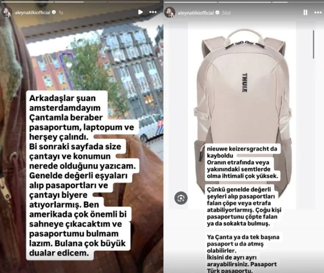 O, paylaşımında çantasının içərisindəki pasport, noutbuk və digər şəxsi əşyalarının oğurlandığını bildirib. “Dostlar, mən hazırda Amsterdamdayam. Çantam pasportum, noutbukum və başqa hər şeylə birlikdə oğurlanıb. Çanta və onun yeri barədə növbəti səhifədə məlumat verəcəyəm. Onlar, adətən, qiymətli əşyaları götürüb pasportları və çantanı harasa atırlar. Mən ABŞ-də çox vacib səhnədə çıxış etməli idim və pasportumu tapmalıyam. Kim tapsa, çox dua edəcəyəm”, – deyə Aleyna Tilki qeyd edib.