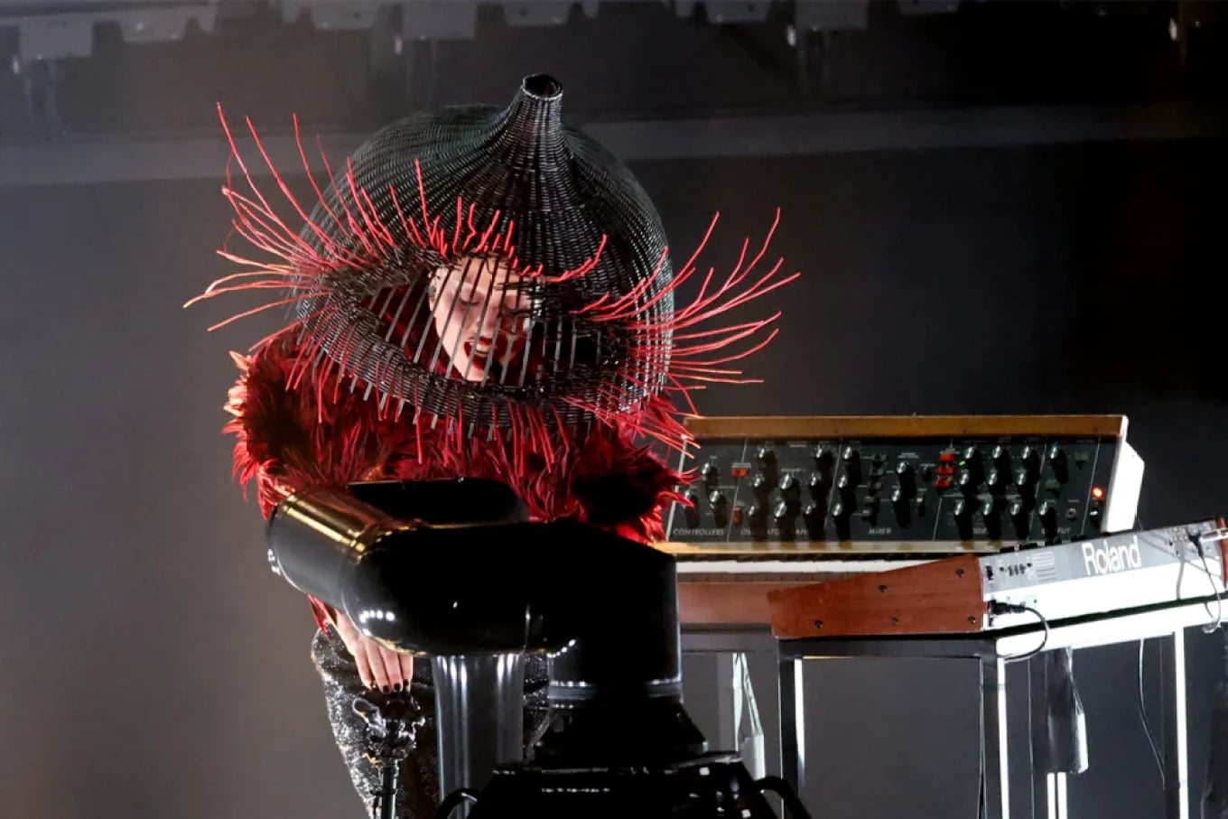 Özəl ekstravaqant üslubunda Qaqa qırmızı lələk geyinib və üzünü qəfəsə bənzər bir quruluş örtərək ifanın dramatik təbiətini vurğulayıb.