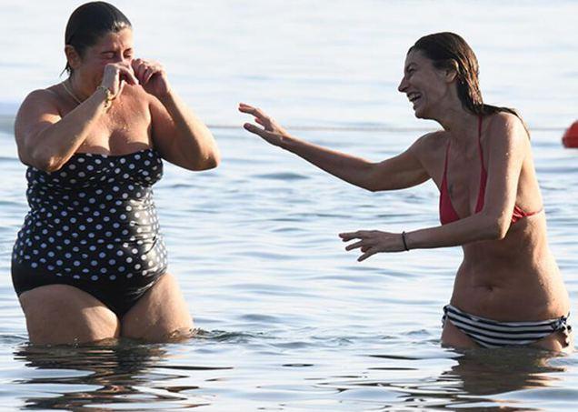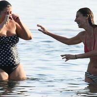 Uzun müddət dənizdə vaxt keçirib soyuduqdan sonra bir qrup dostları ilə zarafat edən Seda Akman oturduğu masaya gedib və sevincinin səbəbi başa düşülüb.