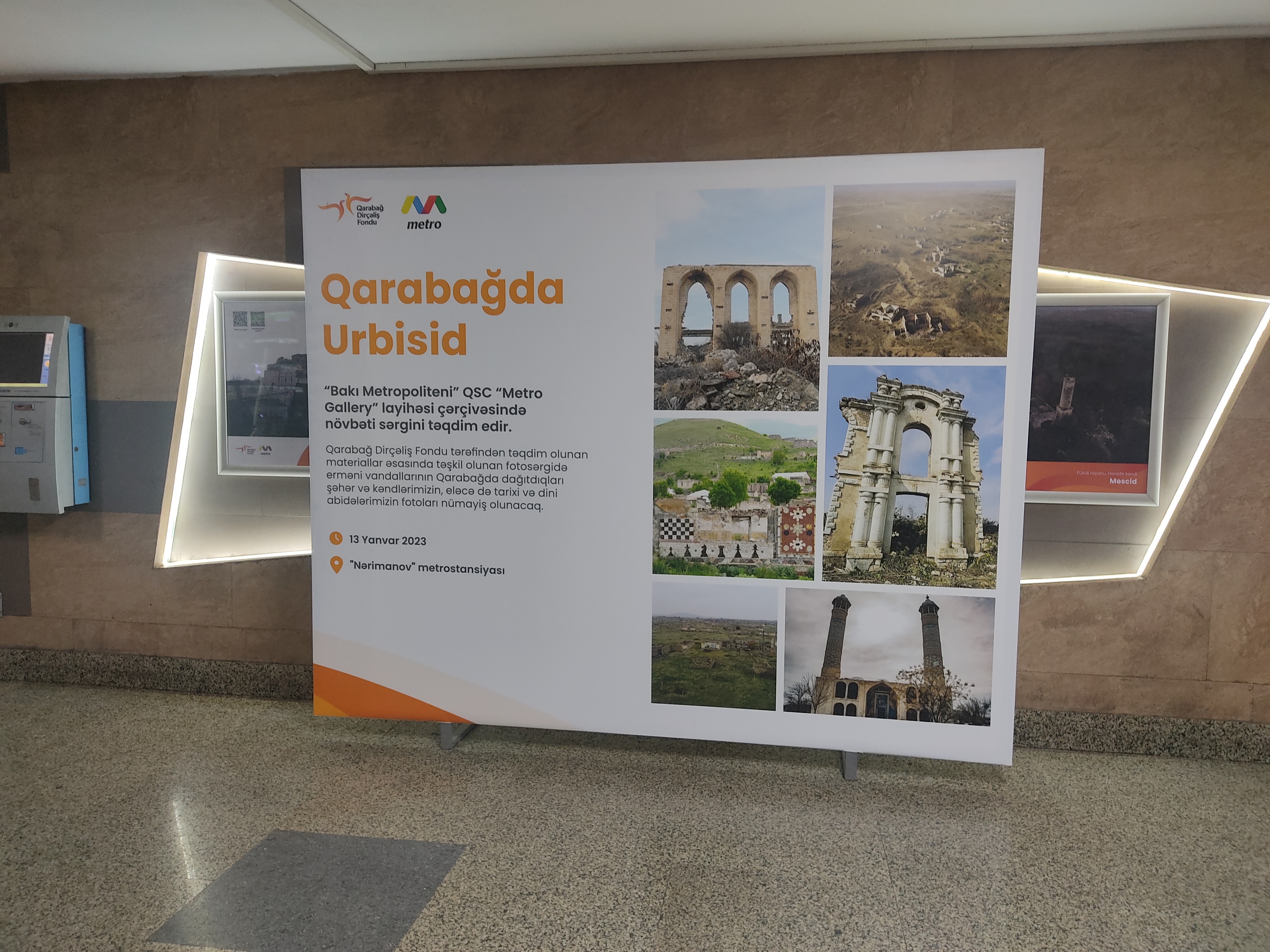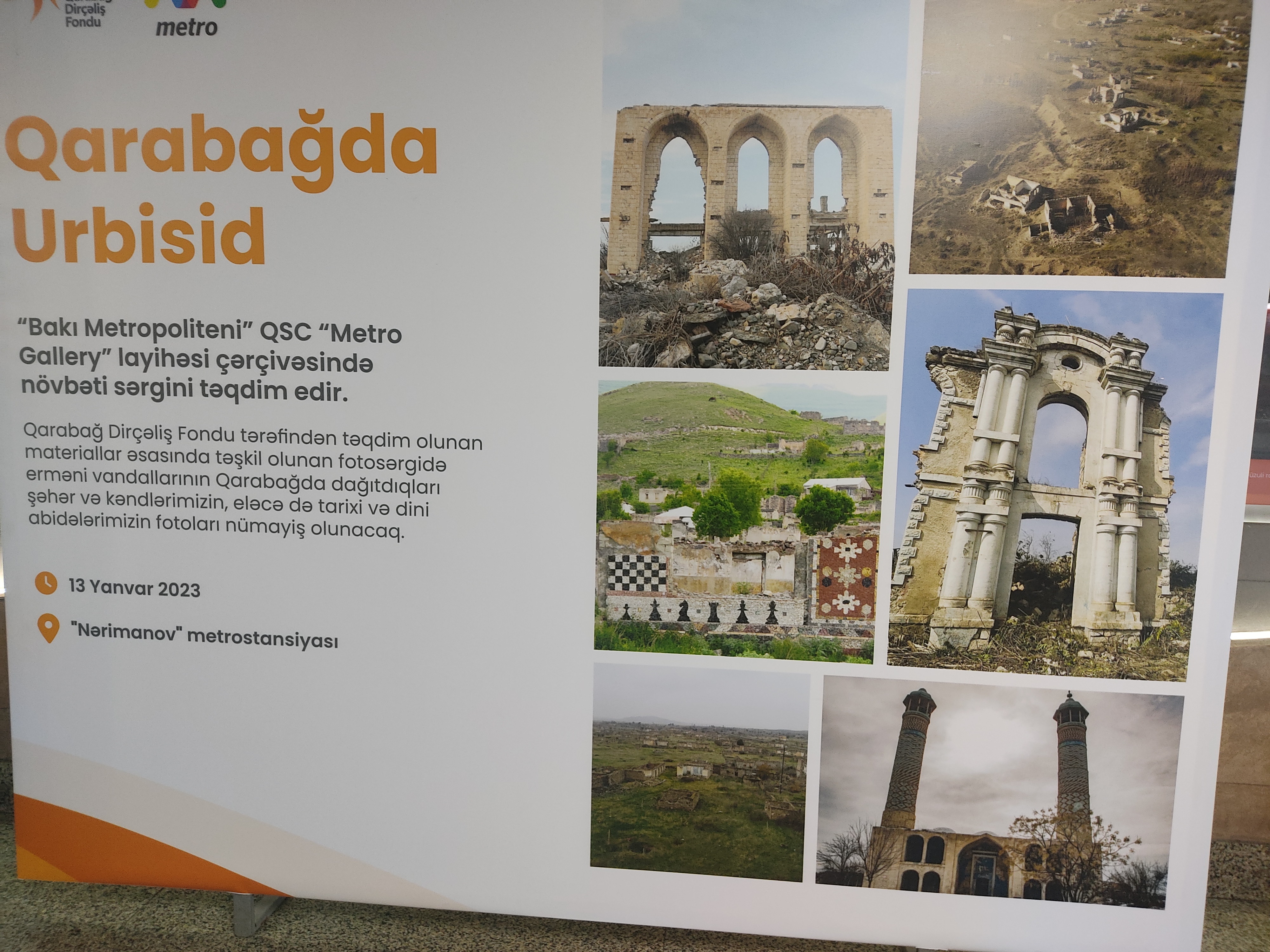 Bu gün Qarabağ Dirçəliş Fondu və "Bakı Metropoliteni" QSC-nin birgə təşkilatçılığı ilə "Qarabağda urbisid" fotosərgisinin açılışı baş tutur. SİA xəbər verir ki, dağıdılmış memarlıq, tarixi irs və dini abidələr, onların əvvəlki vəziyyətini əyani göstərən çoxsaylı fotostendlər nümayiş olunacaq. Bu isə həqiqətlərin, reallıqların ictimaiyyətə çatdırılması baxımından əhəmiyyətlidir.