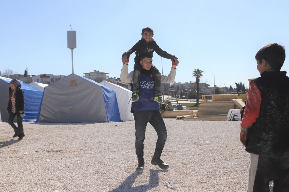 Şübhəsiz ki, təbii fəlakətdən ən çox təsirlənənlər isə bu faciənin kəskin travmalar buraxdığı uşaqlardır. Zəlzələdən zərər çəkənlərin, xüsusilə də uşaqların müsbət əhvali-ruhiyyəyə ehtiyacı olduğunu nəzərə alaraq, Azərbaycan könüllüləri tərəfindən uşaq bağçası kimi yaradılmış üç çadırda xidmət həyata keçirilib, o cümlədən kədər, itki və qəmginliyi olan uşaqların asudə vaxtının səmərəli təşkili məqsədilə müxtəlif oyunlar təşkil ediblər.