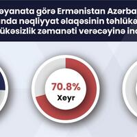 Sosial Tədqiqatlar Mərkəzi tərəfindən Naxçıvan MR-da keçirilən ictimai rəy sorğusu çərçivəsində Zəngəzur dəhlizinin gələcək təhlükəsizlik perspektivləri ictimai rəydə qiymətləndirilib. SİA xəbər verir ki, sorğu iştirakçılarının 45,6%-i nəqliyyat-kommunikasiya əlaqələrinin bərpa olunmasından sonra Ermənistan ərazisindən keçən həm avtomobil, həm də dəmir yolu ilə hərəkət etməyi təhlükəsiz və etibarlı hesab etdiyini bildirib. Respondentlərin 26,8%-i yalnız dəmir yolu ilə hərəkət etməyi, 10,4%-i yalnız avtomobil yolu ilə hərəkət etməyi təhlükəsiz və etibarlı hesab edib. Respondentlərin 15,4%-i heç birini ntəhlükəsiz və etibarlı olmadığını qeyd edib.