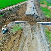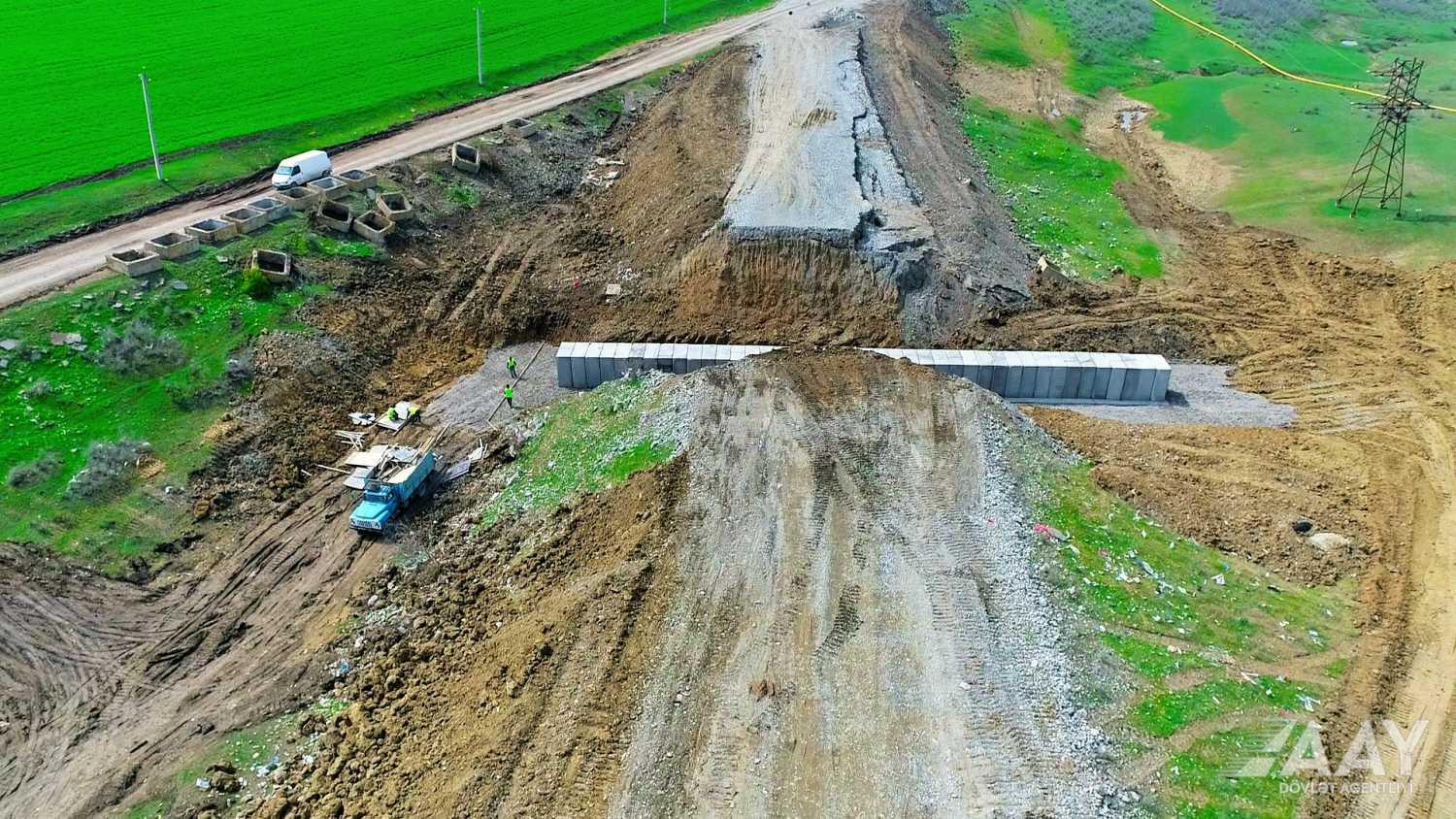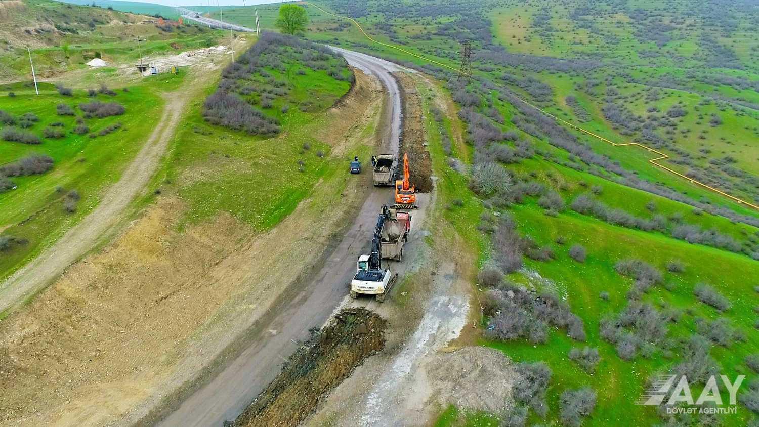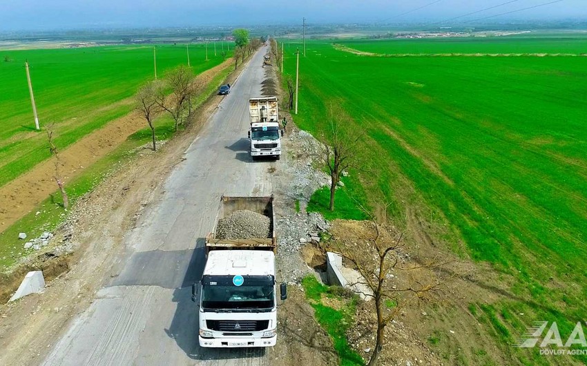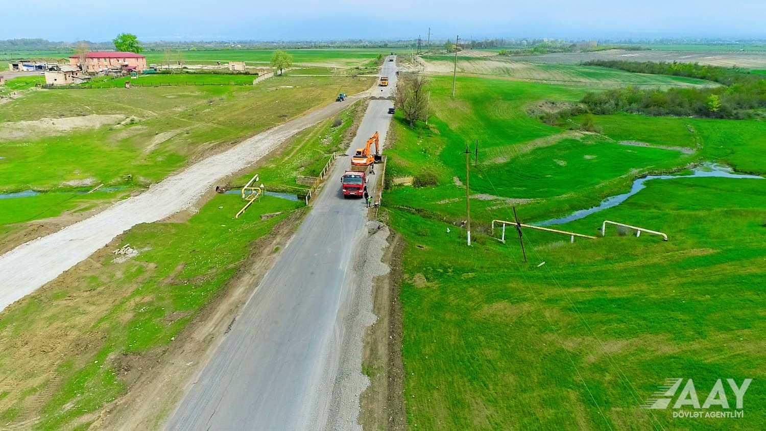 Bildirilir ki, hazırda torpaq işləri yerinə yetirilir, yol yatağının yararsız qruntu qazılaraq çıxarılır, müxtəlif həcmdə yol yatağının genişləndirilməsi işləri icra olunur, yeni yol yatağı inşasına hazırlıq aparılır.