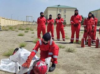 Praktiki hissədə isə FHN-in peşəkar yanğınsöndürən və xilasediciləri yanğın təhlükəsizliyi və xilasetmə işlərində istifadə olunan xüsusi texnika və avadanlıqlarla davranış qaydaları əyani şəkildə izah olunub.
