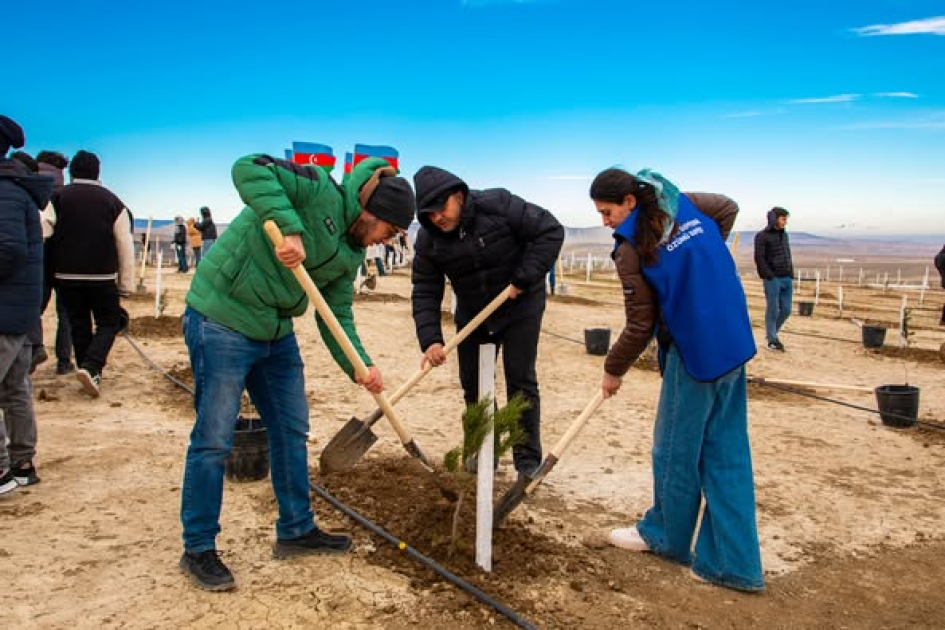 Aksiya çərçivəsində Abşeron yarımadasının torpaq-iqlim şəraitinə uyğun Eldar şamı və zeytun ağacları əkilib.