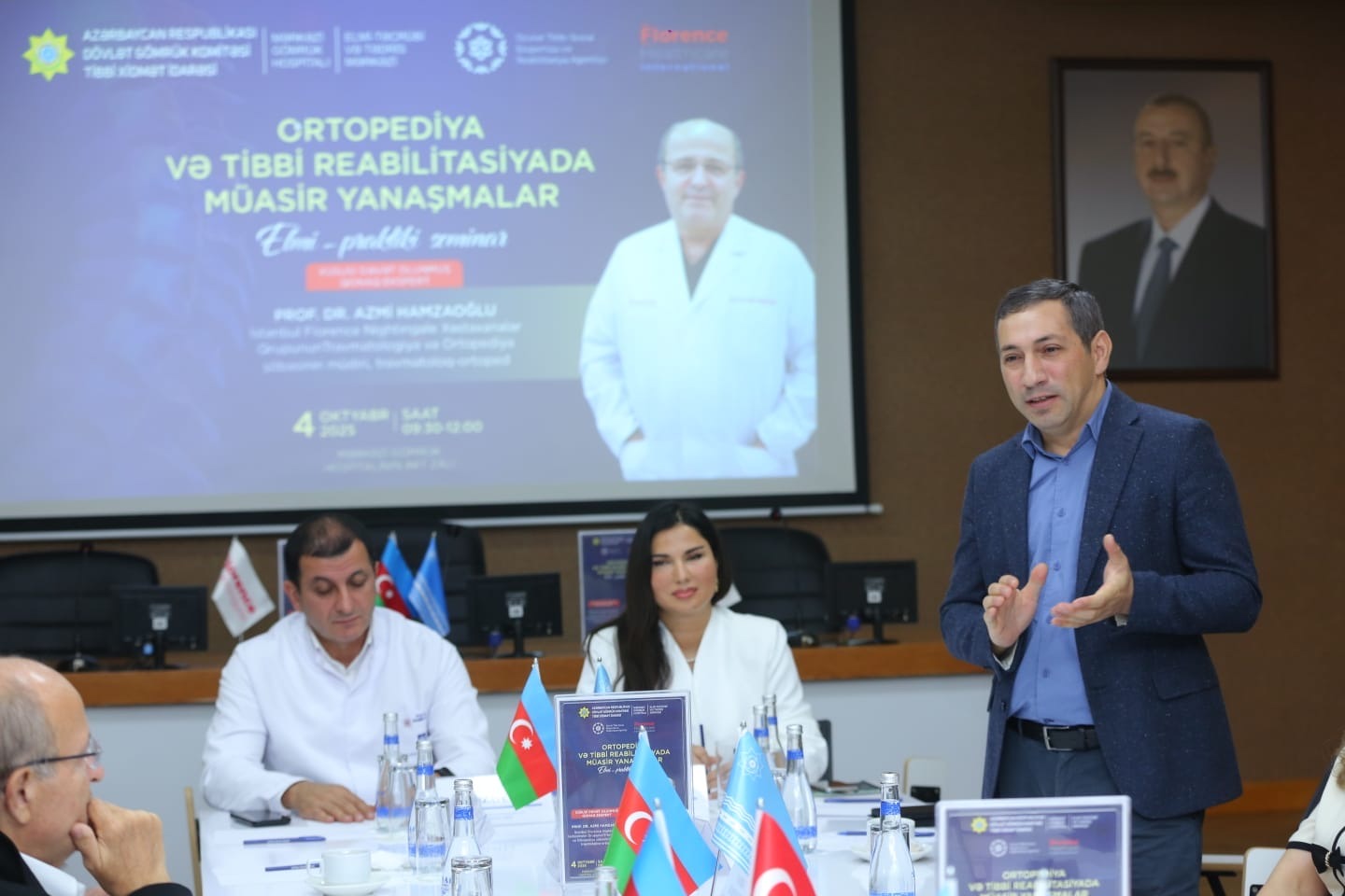 Daha sonra İstanbul Florence Nightingale Xəstəxanalar Qrupunun Travmatologiya və Ortopediya şöbəsinin müdiri, travmatoloq-ortoped Prof. Dr. Azmi Hamzaoğlu təcrübəsində rastlaşdığı klinik hallar, həyata keçirdiyi mürəkkəb əməliyyatlar barədə geniş təqdimatla çıxış edib və skoliozun ağırlaşma və fəsadları barədə həkim və rezidentlərin suallarını cavablandırıb.