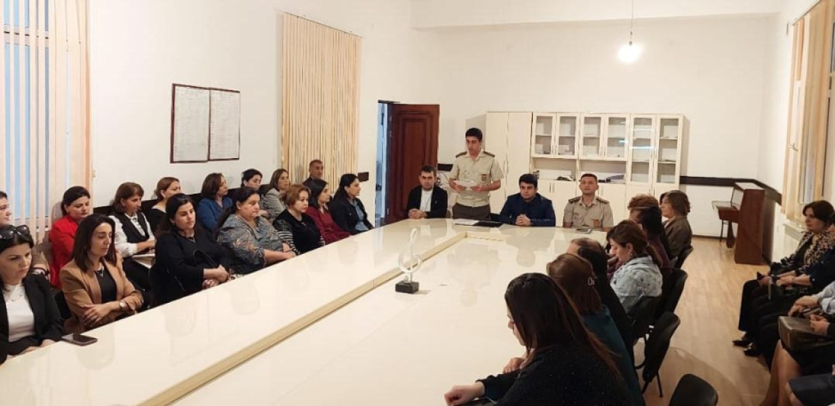 Bildirilib ki, FHN-in Dövlət Yanğın Nəzarəti, Kiçikhəcmli Gəmilərə Nəzarət və Sularda Xilasetmə Dövlət xidmətlərinin mütəxəssislərinin də iştirakı ilə Bakı Regional Mərkəzi tərəfindən Xəzər rayonunun ərazisində yerləşən 92 və 262 nömrəli tam orta məktəblərində, Sumqayıt Regional Mərkəzi tərəfindən Sumqayıt şəhər Bülbül adına 2 nömrəli Uşaq İncəsənət Məktəbində, Abşeron-Xızı Regional Mədəniyyət İdarəsində, Xızı rayon Sitalçay 1 nömrəli və Abşeron rayon Pirəküşkül kənd tam orta məktəblərində, Abşeron rayon Mehdiabad qəsəbə Uşaq Musiqi Məktəbində və Xızı rayonunun sel təhlükəli yaşayış məntəqələrində maarifləndirmə tədbiriləri keçirilib. Eyni zamanda, Gəncə Regional Mərkəzi tərəfindən Şəmkir rayon Düyərli kənd 2 nömrəli və Göygöl rayon N. Verdiyev adına Sarısu kənd tam orta məktəblərində, Qazax-Tovuz Regional Mədəniyyət İdarəsində, Ağstafa rayon Köçvəlili bələdiyyəsində və 1 saylı “ASAN xidmət” mərkəzində, Şimal-qərb Regional Mərkəzi tərəfindən Ağsu rayon M. Rəhimov adına Musabəyli kənd və H. Hüseynov adına Qaraqoyunlu kənd tam orta məktəblərində, Qarabağ Regional Mərkəzi tərəfindən Ağcabədi şəhər 7 nömrəli və Bərdə rayon Qullar kənd tam orta məktəblərində, Tərtər şəhər 2 nömrəli məktəb-liseyində müvafiq tədbirilər təşkil olunub. Həmçinin Şimal Regional Mərkəzi tərəfindən Xaçmaz rayon Xudat şəhər 5 nömrəli ümumi orta məktəbində, Aran Regional Mərkəzi tərəfindən Yevlax rayon R. Rzayev adına Qoyunbinəsi kənd tam orta məktəbində, Muğan Regional Mərkəzi tərəfindən Saatlı rayon Günəşli kənd tam orta məktəbində və Cənub Regional Mərkəzi tərəfindən Masallı rayon Q.Babayev adına Mahmudavar kənd ümumi orta məktəbində maarifləndirmə tədbiriləri keçirilib.