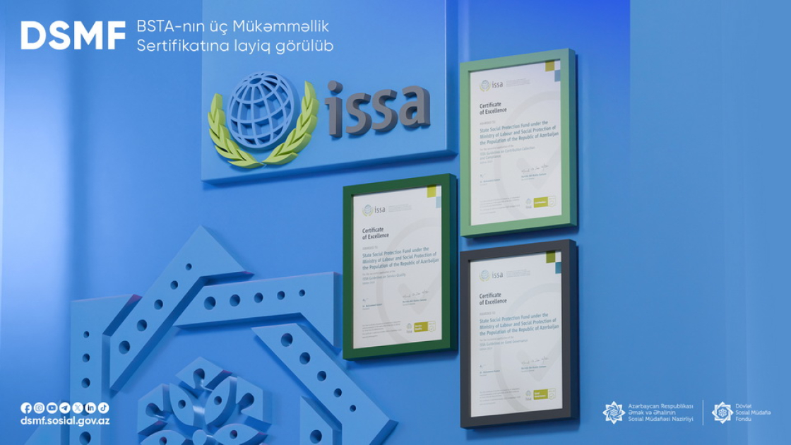 Ölkəmizdə sosial təminat sahəsində son illər aparılan islahatlar Beynəlxalq Sosial Təminat Assosiasiyası (BSTA) tərəfindən yüksək qiymətləndirilir. Bunun növbəti təzahürü olaraq Əmək və Əhalinin Sosial Müdafiəsi Nazirliyinin tabeliyində Dövlət Sosial Müdafiə Fondu (DSMF) BSTA-nın həyata keçirdiyi Qiymətləndirmə (Tanıtım) Proqramının “MDSS haqlarının toplanması və uyğunluq” meyarı üzrə Mükəmməllik Sertifikatı ilə təltif edilib. Fondun mətbuat xidmətindən SİA-ya verilən məlumata görə, DSMF-nin 2022-ci ildə təltif olunduğu “Yaxşı idarəçilik” və “Xidmət keyfiyyəti” meyarları üzrə Mükəmməllik Sertifikatları (2023–2025) üzrə işlər müfəssəl təhlil edildikdən sonra növbəti üç il (2026–2028) müddətinə qüvvədə olan iki Mükəmməllik Sertifikatına da layiq görülüb.