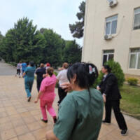 Əvvəlcə, təlimin nəzəri hissəsində FHN-in əməkdaşları tərəfindən xəstəxananın kollektivinə fövqəladə hallar, o cümlədən yanğınlar zamanı zəruri davranış qaydaları, təxliyə tədbirləri barədə ətraflı məlumat verilib, bu barədə videoçarxlar nümayiş etdirilib.